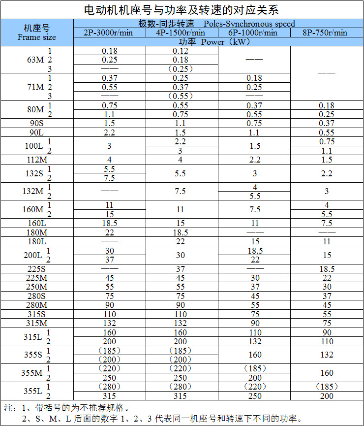 本系列電動(dòng)機(jī)的功率等級(jí)、安裝尺寸符合國際電工委員會(huì)(IEC)標(biāo)準(zhǔn),其對(duì)應(yīng)關(guān)系與德國DIN42673標(biāo)準(zhǔn)相同,有利于出口設(shè)備的配套和引進(jìn)設(shè)備的備品備件。